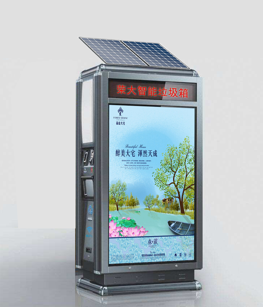 智能垃圾箱頂部安裝太陽(yáng)能板,通過(guò)太陽(yáng)能為垃圾箱提供電源,以維護(hù)垃圾箱各個(gè)功能24小時(shí)的正常運(yùn)行,環(huán)保節(jié)能,也不用擔(dān)心意外斷電的問(wèn)題。